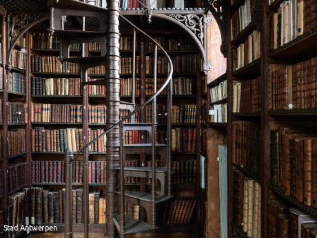 Tijdens de gegidste rondleiding 'Schatten van de Nottebohmzaal' maak je een historische trip van begin zeventiende eeuw tot vandaag. We krijgen een introductie tot de Erfgoedbibliotheek en de blikvangers in haar collectie, en tot de geschiedenis van het gebouw en het Hendrik Conscienceplein.